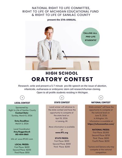 Right to Life of Michigan and Right to Life of Sanilac County may use the information you provide about yourself to fulfill your requests for Right to Life of Michigan’s programs and services. We will disclose information we maintain when required to do so by law.